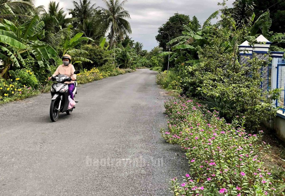 Tuyến đường hoa ấp Nhơn Hòa (ấp NTM kiểu mẫu) ở Tân Hòa.