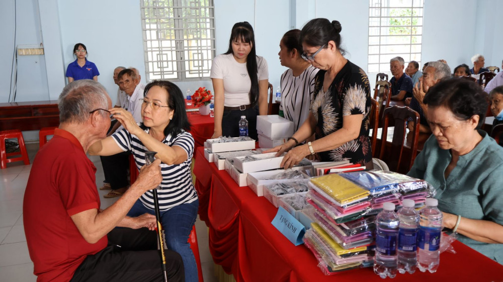 Tại buổi lễ, đơn vị tài trợ trao tặng 100 cặp kính lão kèm 100 phần quà (800.000 đồng/phần) cho người cao tuổi có hoàn cảnh khó khăn trên địa bàn xã, với tổng trị giá 80 triệu đồng, do công ty TNHH Lê Huỳnh Vy (trụ sở tại xã Dương Minh Châu, tỉnh Tây Ninh) hỗ trợ.