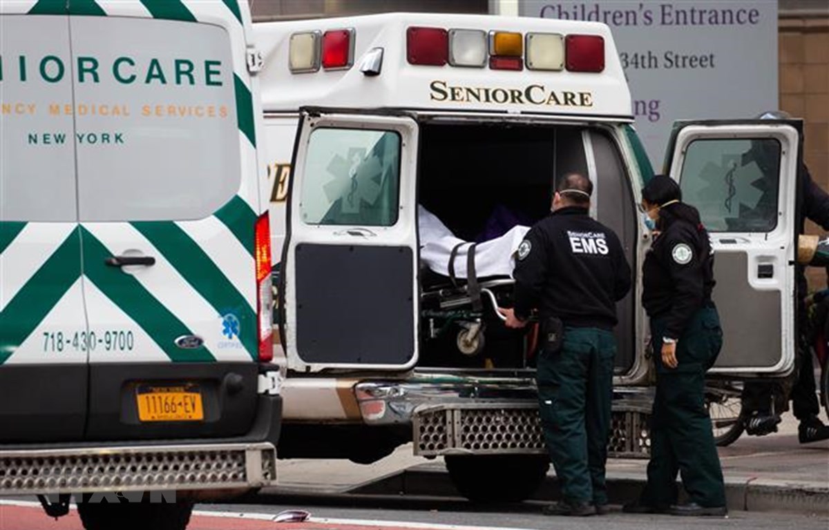Nhân viên y tế chuyển bệnh nhân COVID-19 tới trung tâm y tế ở New York, Mỹ, ngày 8/1/2021. (Ảnh: THX/TTXVN)