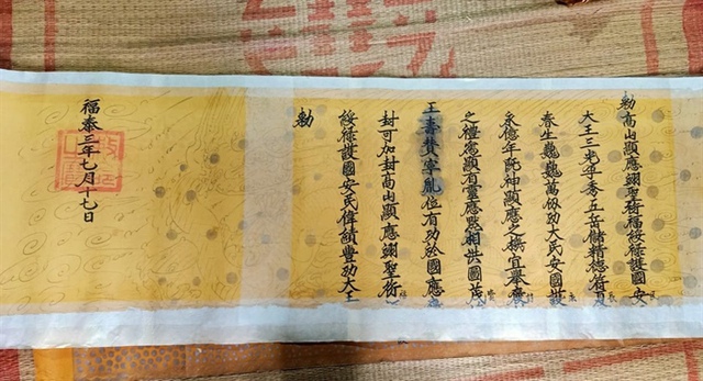 | Sắc phong niên hiệu Phúc Thái thứ 3 của đền Quốc Tế ở Dị Nậu, huyện Tam Nông, tỉnh Phú Thọ. (Ảnh: Theo Bộ VHTTDL) |