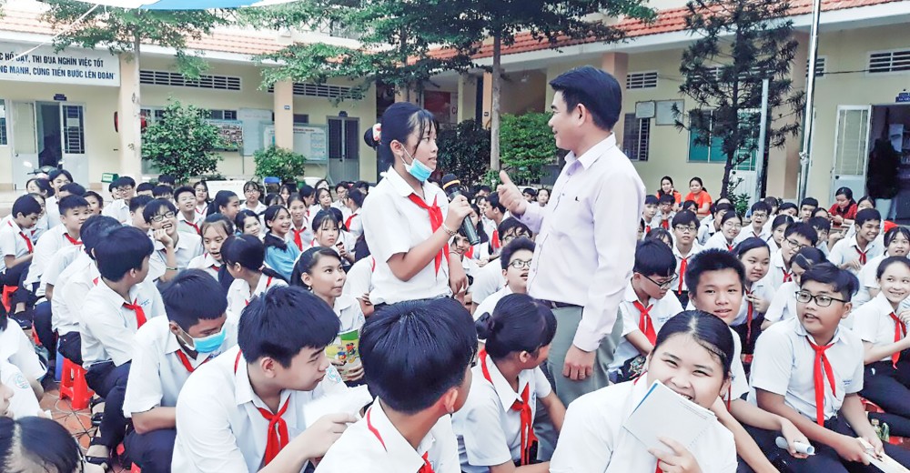 Trung tâm Công tác xã hội TP Cần Thơ tuyên truyền về các kỹ năng phòng tránh bạo lực, xâm hại trẻ em tại trường học trên địa bàn quận Ninh Kiều. Ảnh: Trung tâm Công tác xã hội TP Cần Thơ.