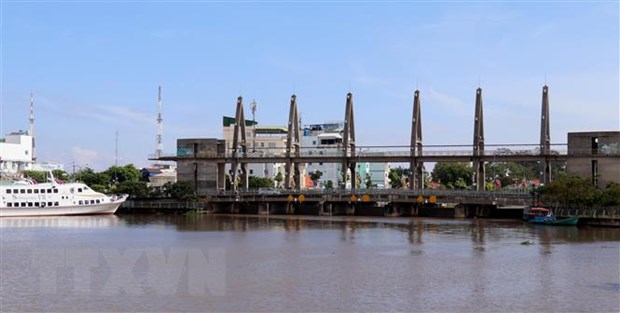 Cống sông Kiên ngăn mặn, giữ ngọt phục vụ sản xuất vùng Tứ giác Long Xuyên (Kiên Giang). (Ảnh: Lê Huy Hải/TTXVN)