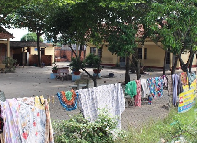 Qua ghi nhận, đây là một ngôi trường xây dựng cấp 4, có ít phòng học và khá cũ, hàng rào phía trước giăng bằng lưới B40 và sân trường có nhiều cây xanh tỏa bóng mát. Do là ngày nghỉ nên trường khá yên ắng, cửa sắt đóng lại.