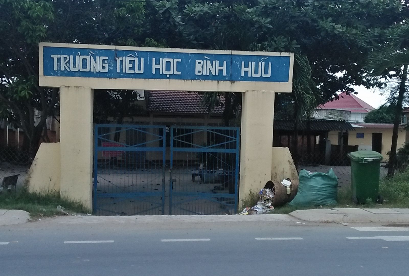 Trường Tiểu học Bình Hữu nằm sát bên tuyến đường nhựa lớn, đông người qua lại