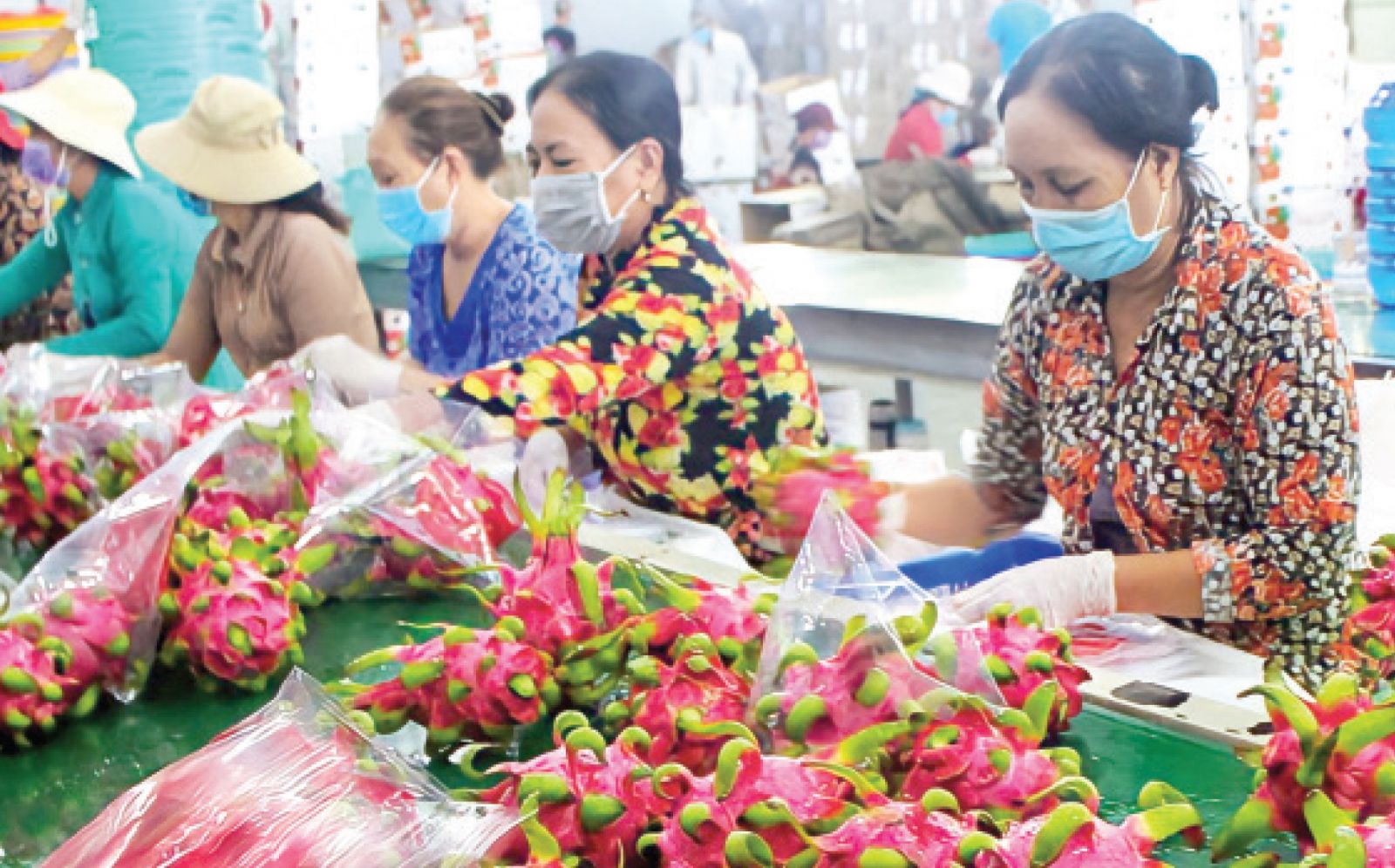 Công nhân tham gia đóng gói thanh long trước khi tiêu thụ. (ảnh tư liệu: Huỳnh Phong)