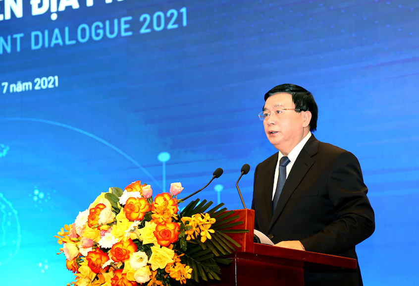 | Đồng chí Nguyễn Xuân Thắng, Uỷ viên Bộ Chính trị, Giám đốc Học viện Chính trị Quốc gia Hồ Chí Minh, Chủ tịch Hội đồng Lý luận Trung ương phát biểu tại Đối thoại phát triển địa phương 2021. |