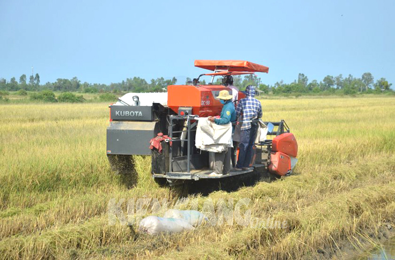 Nông dân huyện An Biên (Kiên Giang) thu hoạch lúa hè thu 2022.