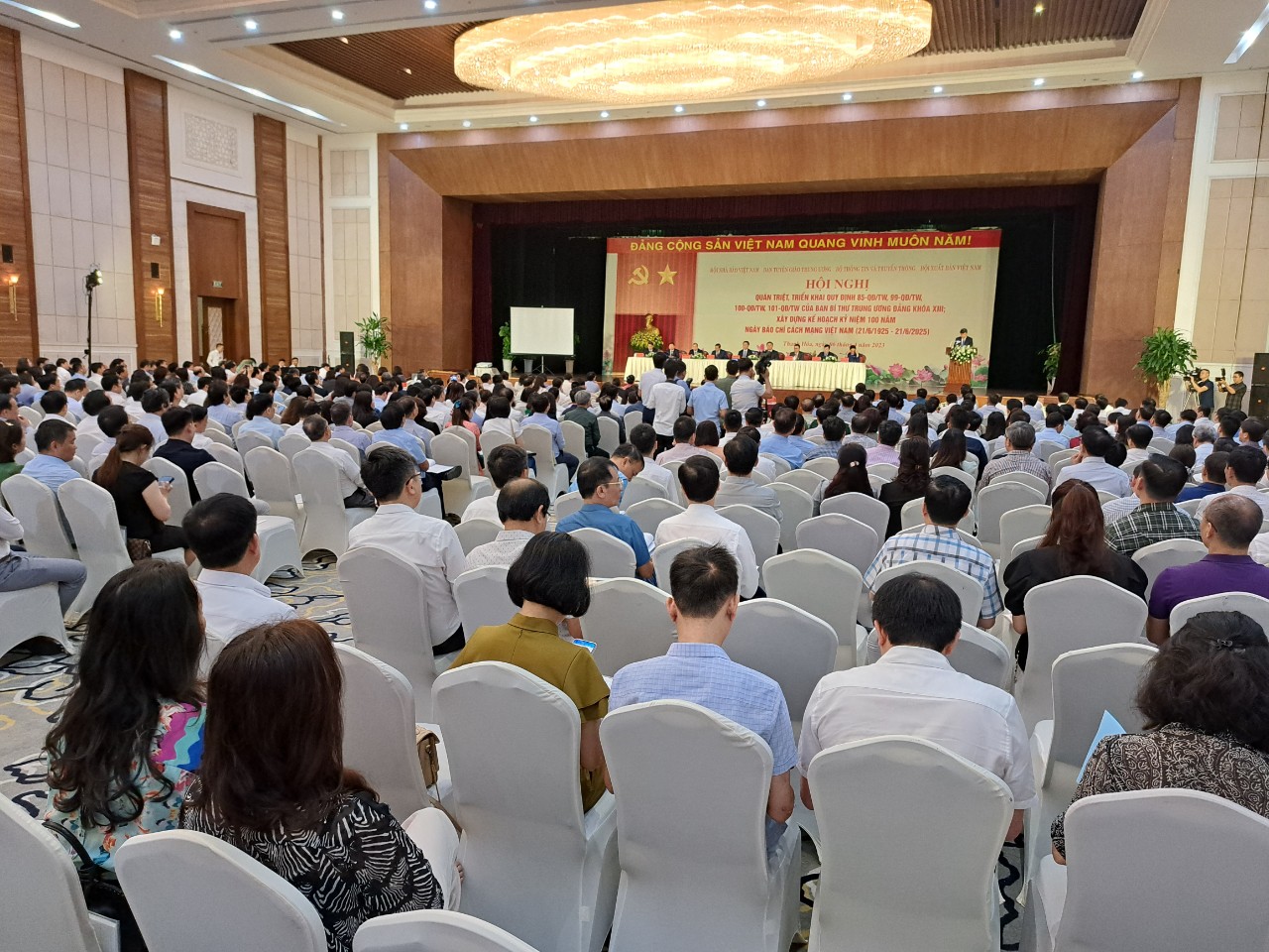Cùng tham gia chủ trì Hội nghị có các đồng chí: Lại Xuân Môn, Uỷ viên Trung ương Đảng, Phó Trưởng ban Thường trực Ban Tuyên giáo Trung ương; Lê Quốc Minh, Uỷ viên Trung ương Đảng, Tổng Biên tập báo Nhân Dân, Phó Trưởng ban Tuyên giáo Trung ương, Chủ tịch Hội Nhà báo Việt Nam; Đỗ Trọng Hưng, Ủy viên Trung ương Đảng, Bí thư Tỉnh ủy, Chủ tịch HĐND tỉnh Thanh Hóa; Lê Hải Bình, Ủy viên Dự khuyết Trung ương Đảng, Phó Trưởng ban Tuyên giáo Trung ương; Trần Thanh Lâm, Phó Trưởng Ban Tuyên giáo Trung ương; Vũ Thanh Mai, Phó Trưởng ban Tuyên giáo Trung ương; Nguyễn Thanh Lâm, Thứ trưởng Bộ Thông tin và Truyền thông; Hoàng Vĩnh Bảo, Chủ tịch Hội Xuất bản Việt Nam.