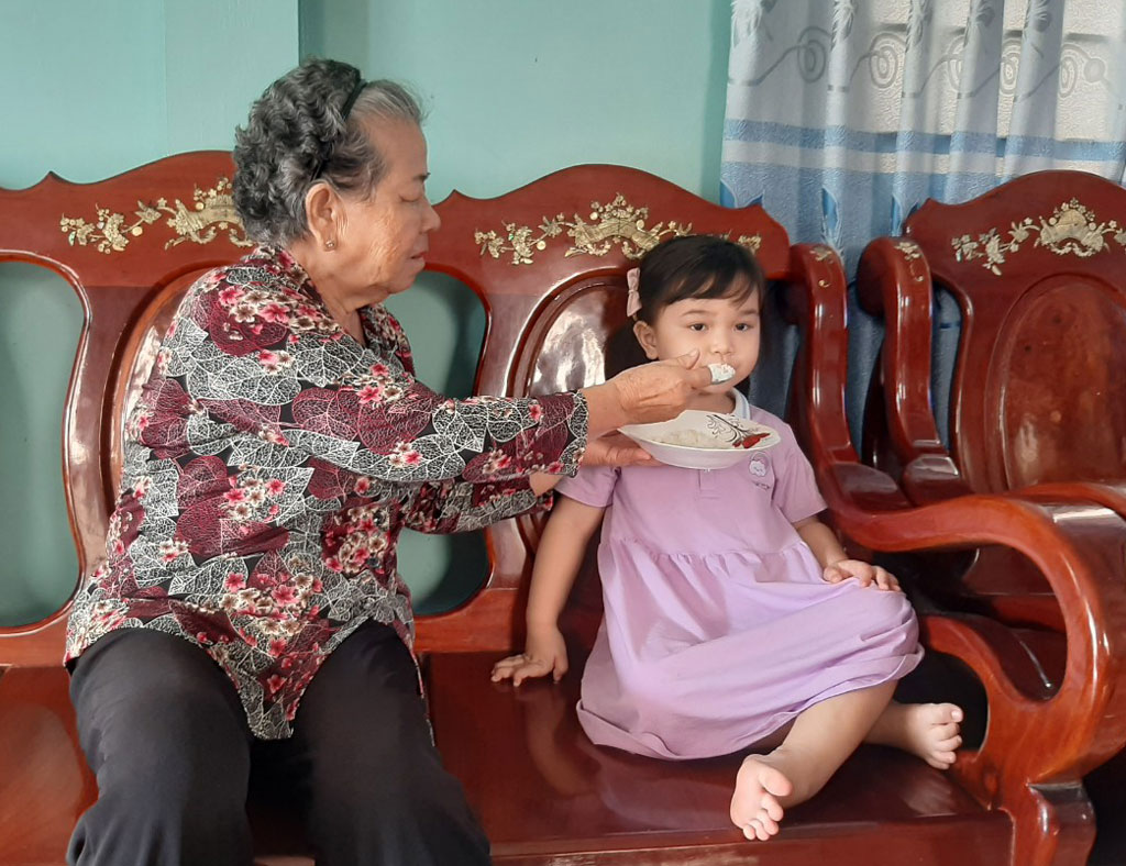 Bà Lê Thị Đức đang chăm sóc cháu nội