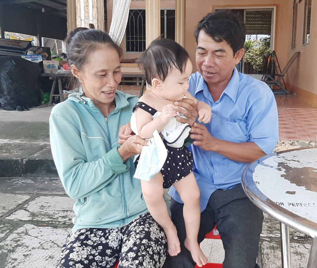 Vợ chồng ông Nguyễn Văn Thanh trông cháu nhỏ