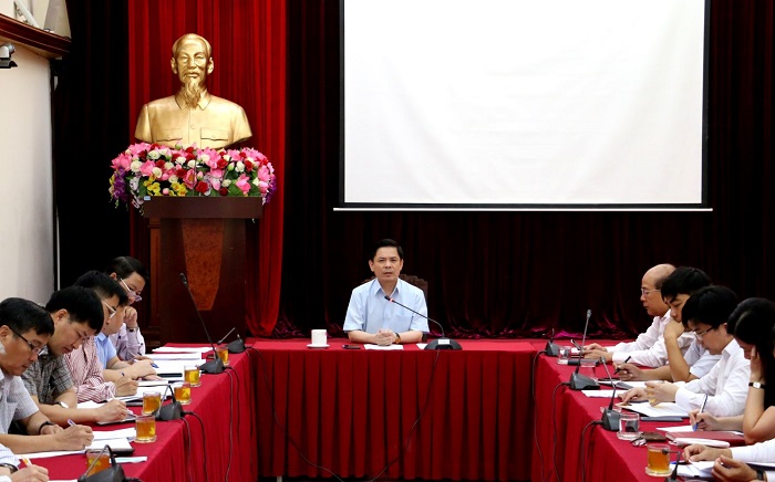 | Bộ trưởng Bộ GTVT Nguyễn Văn Thể phát biểu chỉ đạo tại cuộc họp bàn về dự thảo. |