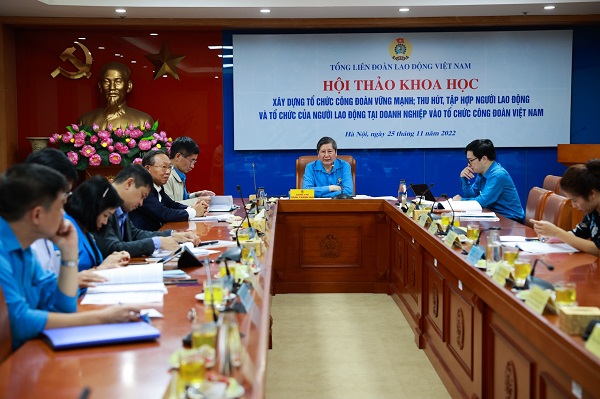 Ngày 25/11, Tổng Liên đoàn Lao động Việt Nam tổ chức Hội thảo khoa học "Xây dựng tổ chức công đoàn vững mạnh; thu hút, tập hợp người lao động và tổ chức của người lao động tại doanh nghiệp vào tổ chức Công đoàn Việt Nam".