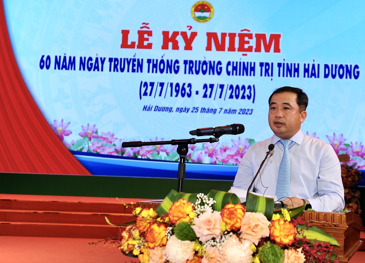 Phát biểu tại lễ kỷ niệm, đồng chí Trần Đức Thắng, Ủy viên Trung ương Đảng, Bí thư Tỉnh uỷ Hải Dương và Phó Giáo sư, Tiến sĩ Nguyễn Duy Bắc, Phó Giám đốc Thường trực Học viện Chính trị quốc gia Hồ Chí Minh ghi nhận, biểu dương những cố gắng nỗ lực của tập thể cán bộ, giáo viên Trường Chính trị tỉnh trong những năm qua.