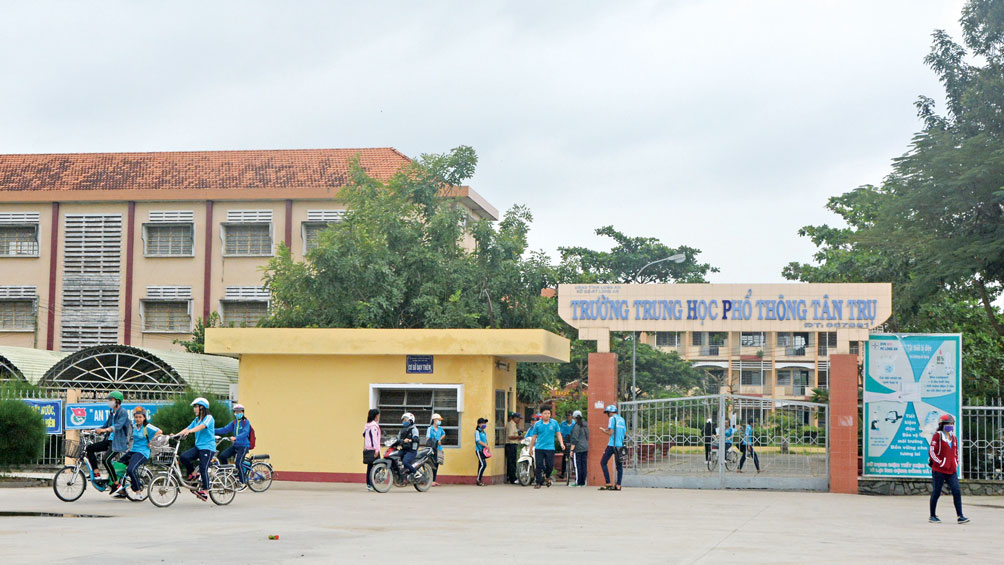 Trường THPT Tân Trụ, một trong những trường đạt chuẩn quốc gia của huyện Tân Trụ