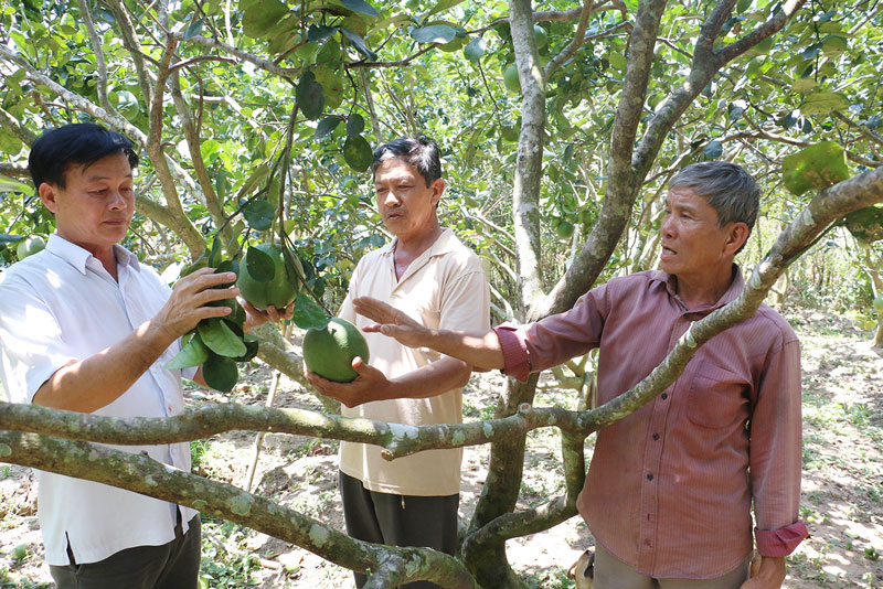 | Chuỗi liên kết bưởi da xanh bước đầu đã xây dựng được vùng nguyên liệu. (Ảnh: Phúc Hậu ) |