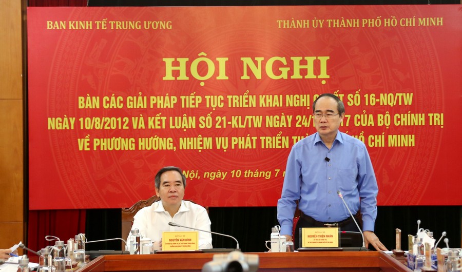 Phát biểu tại buổi làm việc, đồng chí Nguyễn Thiện Nhân, Ủy viên Bộ Chính trị, Bí thư Thành ủy Thành phố Hồ Chí Minh nhấn mạnh: Nghị quyết số 16-NQ/TW của Bộ Chính trị xác định chủ trương: “Chính phủ chỉ đạo các bộ, ngành tiếp tục tháo gỡ những khó khăn, vướng mắc, tạo thuận lợi để TP Hồ Chí Minh thực hiện thắng lợi các nhiệm vụ... Cụ thể là xem xét để tăng tỷ lệ điều tiết cho ngân sách TP Hồ Chí Minh đối với các nguồn thu có sự phân chia giữa Trung ương và TP Hồ Chí Minh”.