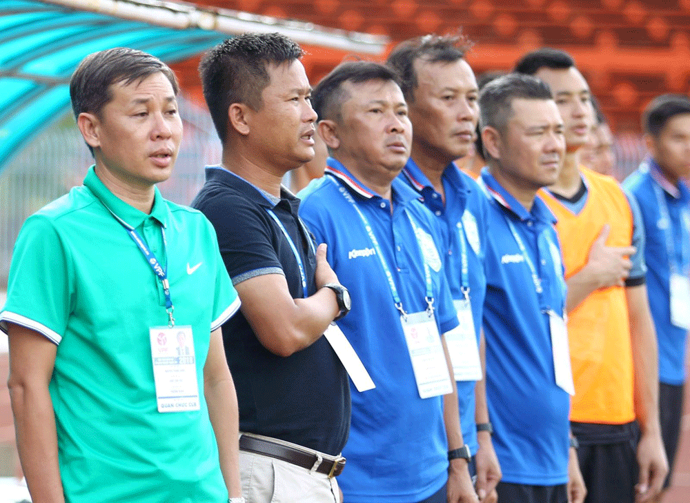 Ông Nguyễn Thanh Danh (bìa trái) thay ông Đinh Hồng Vinh (thứ hai từ trái qua) trên ghế chỉ đạo đội Cần Thơ.