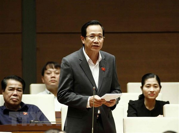 Bộ trưởng Bộ Lao động, Thương binh và Xã hội Đào Ngọc Dung trả lời chất vấn của đại biểu Quốc hội chất vấn về thực trạng trục lợi chính sách, quá trình xét người có công. (Ảnh: Văn Điệp/TTXVN)