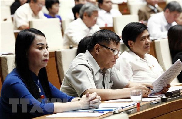 Các đại biểu Quốc hội tỉnh Vĩnh Phúc tại Phiên chất vấn và trả lời chất vấn chiều 1/11. (Ảnh: Văn Điệp/TTXVN)