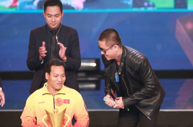Lực sĩ khuyết tật Lê Văn Công tại lễ trao giải Cúp chiến thắng đêm 17-1 ở Hà Nội. Ảnh: Nam Khánh