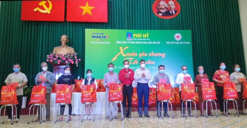 Ngày 23/12, Hội Chữ thập đỏ TP Hồ Chí Minh phối hợp với Công đoàn Tổng Công ty Phân bón và Hóa chất dầu khí tổ chức chương trình “Xuân yêu thương - Tết sẻ chia” hỗ trợ nhân đạo đến các gia đình có hoàn cảnh khó khăn bị ảnh hưởng bởi dịch bệnh, người cao tuổi đơn thân và trẻ em mồ côi, người khuyết tật tại TP Hồ Chí Minh.