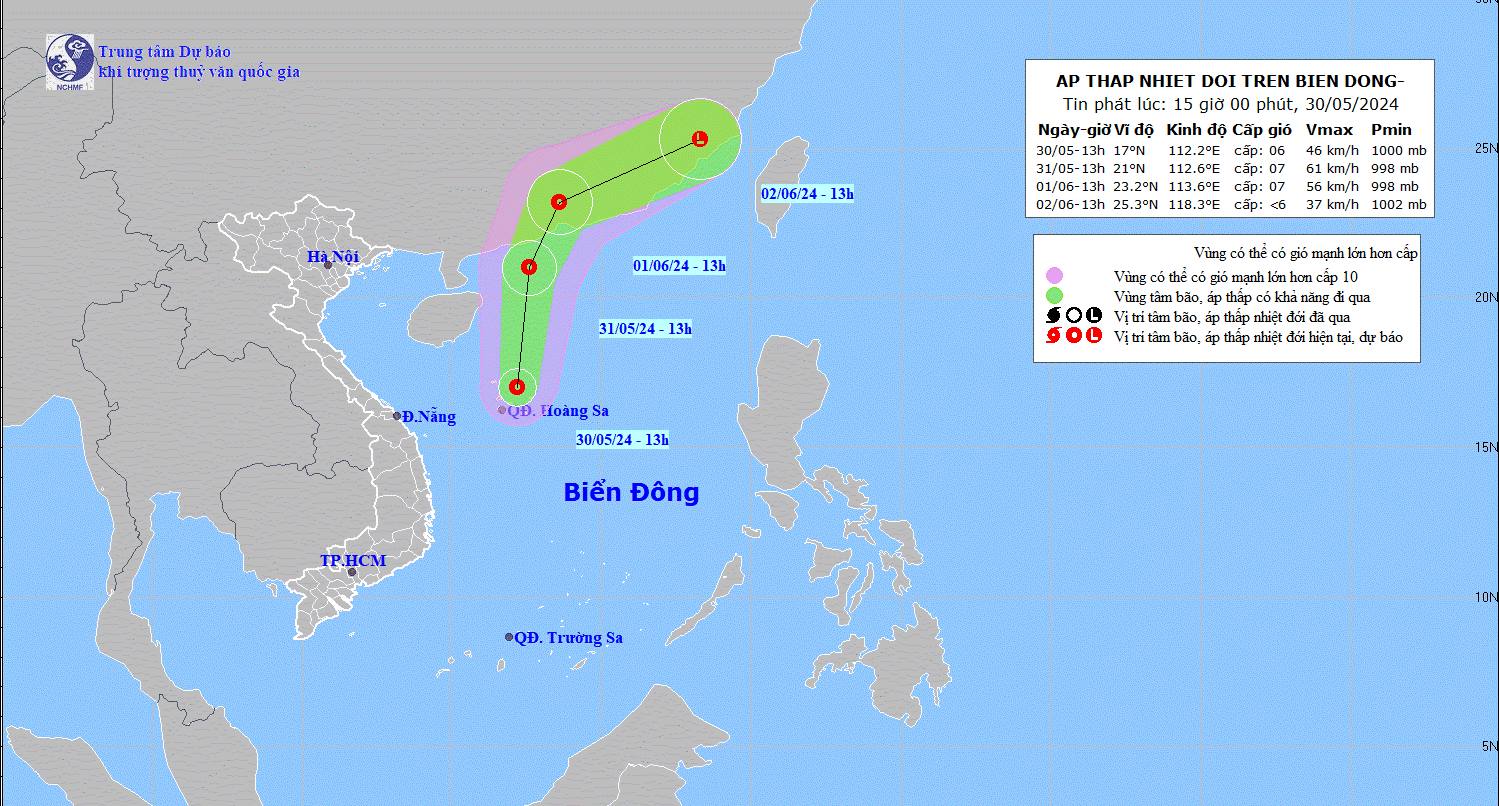 Chiều 30/5, ông Nguyễn Văn Hưởng, Trưởng phòng Dự báo thời tiết, Trung tâm Dự báo Khí tượng Thủy văn Quốc gia cho biết, chiều nay một vùng áp thấp trên khu vực huyện đảo Hoàng Sa đã mạnh lên thành áp thấp nhiệt đới (ATNĐ). Đây là áp thấp nhiệt đới đầu tiên xuất hiện trên Biển Đông trong mùa bão lũ năm nay, dấu hiệu cho thấy mùa bão, lũ, mùa thiên tai trên biển cũng như trên đất liền đã bắt đầu.