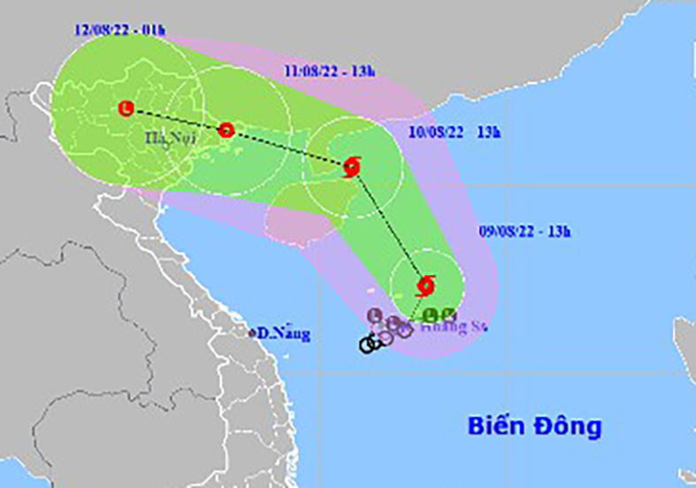 Lúc 13 giờ ngày 9-8, vị trí tâm bão ở vào khoảng 17,3 độ vĩ bắc; 112,9 độ kinh đông trên khu vực phía đông bắc quần đảo Hoàng Sa, cách đảo Hải Nam (Trung Quốc) khoảng 300km về phía đông nam. Sức gió mạnh nhất vùng gần tâm bão mạnh cấp 8 (62-74km/giờ), giật cấp 10. Bán kính gió mạnh cấp 6, giật cấp 8 khoảng 110km tính từ tâm bão.