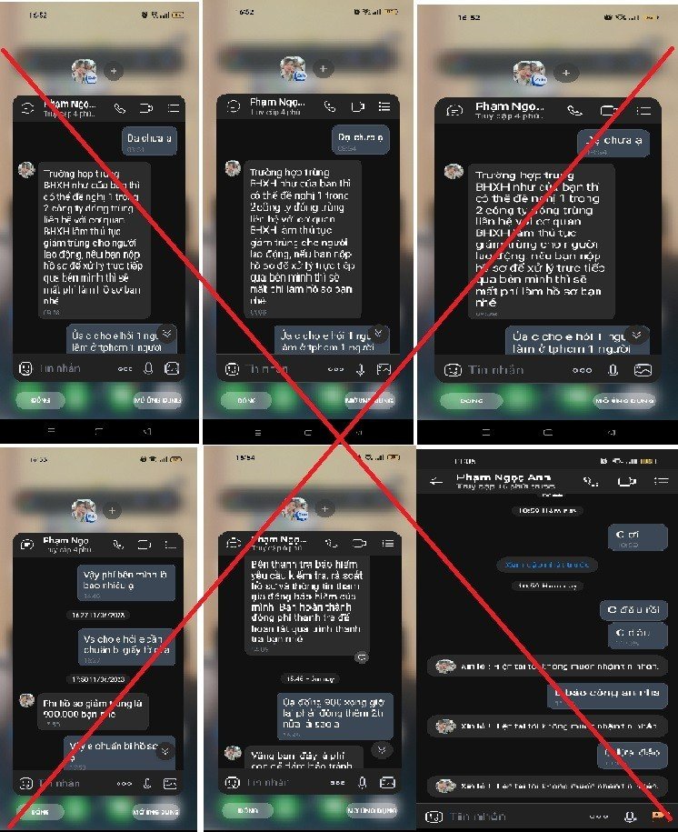 Thông tin từ BHXH Việt Nam ngày 15/6 cho biết: Theo phản ánh của anh T, anh đã cho em trai mượn hồ sơ nhân thân của mình để đóng BHXH. Ngày 11/6/2023, khi có nhu cầu gộp sổ BHXH, cắt giảm quá trình đóng trùng BHXH, anh T. truy cập mạng xã hội (Facebook) và gửi tin nhắn trên Messenger với tài khoản có tên Phạm Ngọc Anh (hiện đối tượng này đã khóa tài khoản) - mạo danh là nhân viên BHXH hỗ trợ tạo nộp và giải quyết các loại hồ sơ bảo hiểm. Hứa sẽ giải quyết được hồ sơ của anh T., tài khoản Facebook Phạm Ngọc Anh yêu cầu anh nộp phí giảm trùng BHXH với số tiền là 900.000 đồng và cung cấp thông tin cá nhân để làm hồ sơ.