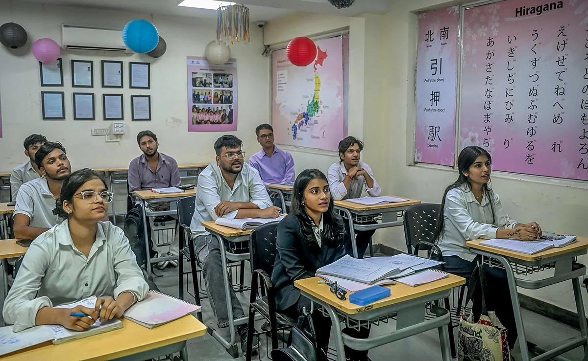 Lao động Ấn Độ trong một giờ học tiếng Nhật. Ảnh: NYT