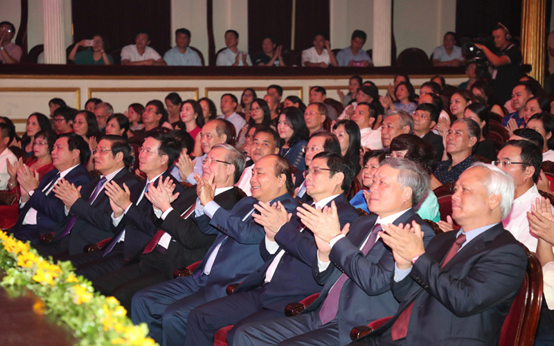 Thủ tướng Nguyễn Xuân Phúc, Thường trực Ban Bí thư Trần Quốc Vượng và các đồng chí lãnh đạo Đảng, Nhà nước dự chương trình. Ảnh: vov.vn
