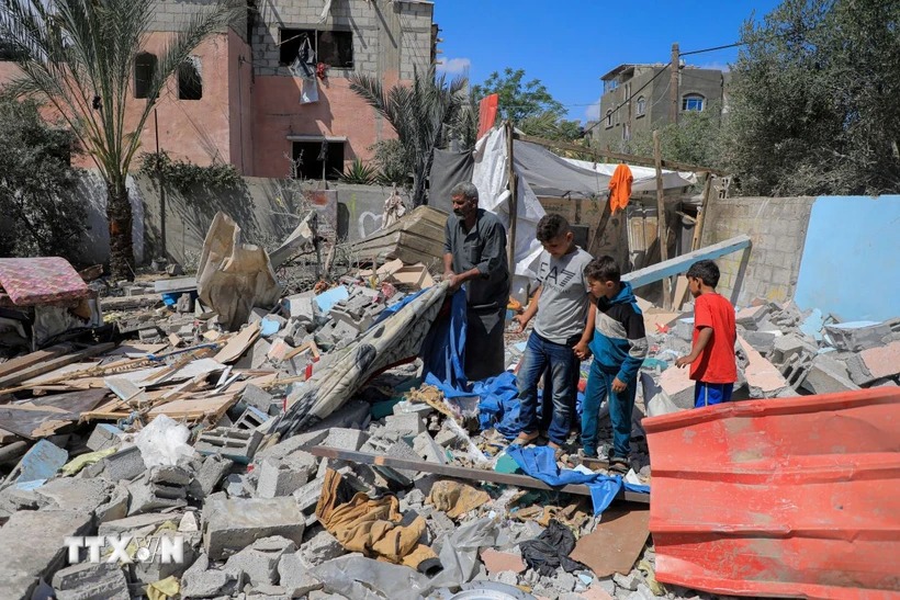 Những ngôi nhà bị phá hủy do cuộc xung đột Hamas-Israel tại thành phố Rafah, Dải Gaza, ngày 7/5/2024. *Ảnh: THX/TTXVN)