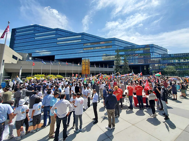 Đám đông người biểu tình tập trung tại Tòa thị chính Calgary. Ảnh: Calgary Herald