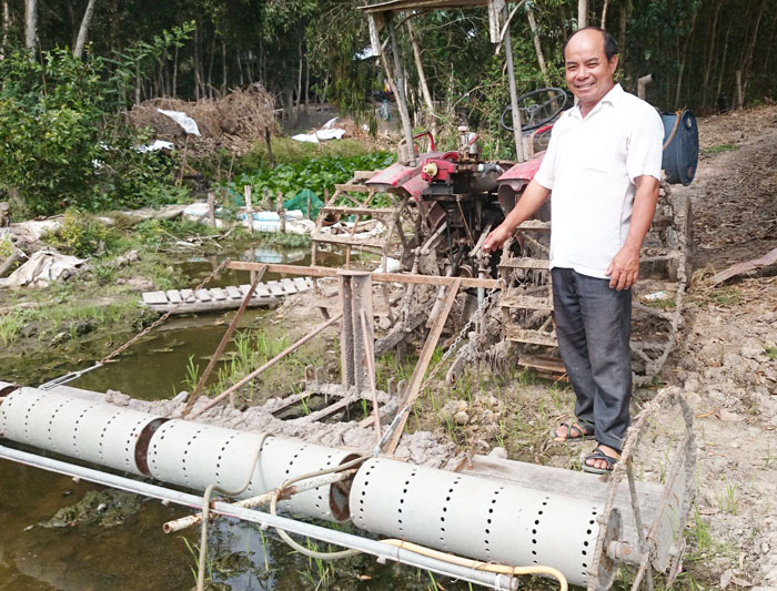 Không dừng lại ở đó, anh tiếp tục nghiên cứu và cải tiến thành máy “4 trong 1” với chức năng san phẳng mặt ruộng, gạt đường nước, xịt thuốc và sạ hàng. Từ chiếc máy cày thông thường, khi cần thiết chỉ cần lắp động cơ và một người ngồi điều khiển, trung bình 2 đến 2,5 giờ sẽ hoàn thành được 1ha đất. Chiếc máy giúp giảm chi phí nhân công, phát huy được thuốc diệt mầm cỏ, đất được xới lên rất đều. Lợi ích của chiếc máy là “lời” được chi phí phải trả cho 3 nhân công/ha lúa, nhất là thời điểm gieo sạ thì nhân công thường xuyên thiếu hụt. Nhờ chiếc máy này mà cây lúa cũng ít đổ ngã, cây cứng cáp và ít bị sâu rầy, phương tiện lại cơ động, khi nào cần mới lắp ráp vào.