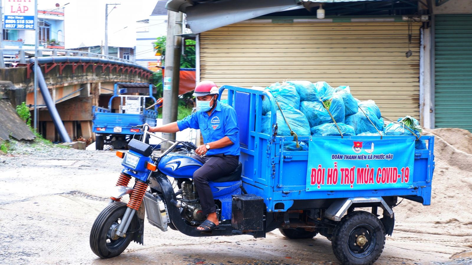 Từ cuối tháng 5/2021 đến nay, người dân huyện Cần Giuộc quen với hình ảnh một chàng trai trẻ, dáng người cao ráo, độ chừng 27-28 tuổi trong bộ trang phục quần tây, áo thanh niên tình nguyện, cùng chiếc xe 3 bánh vận chuyển rau miễn phí để hỗ trợ người dân. Anh là Bí thư Đoàn xã Phước Hậu, huyện Cần Giuộc - Trần Phú Quý.