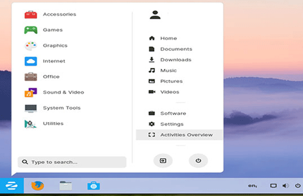 Máy tính để bàn chạy Zorin OS 15 beta sẽ giống như Windows cổ điển hoặc các sản phẩm phân phối của Gnome Linux. Nó có một thanh tiêu chuẩn dưới cùng của màn hình. Phía bên trái của bảng điều khiển là nút menu chính và một số biểu tượng khởi chạy. Thêm các ứng dụng được sử dụng thường xuyên vào bảng dưới cùng này chỉ là một cú nhấp chuột phải trong menu chính. Phía bên phải của bảng điều khiển chứa khay thông báo và các công cụ khởi động hệ thống.